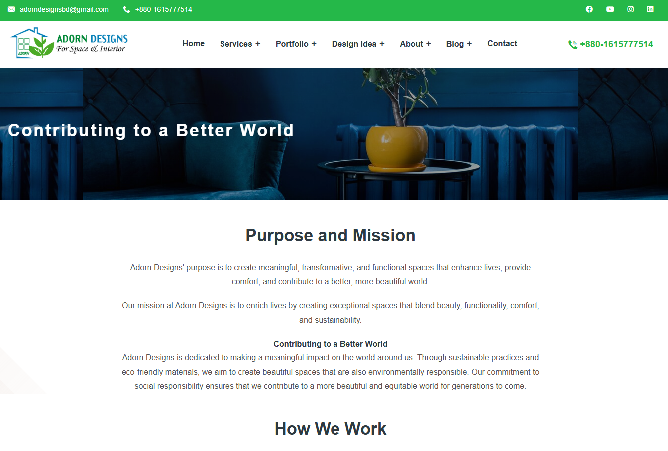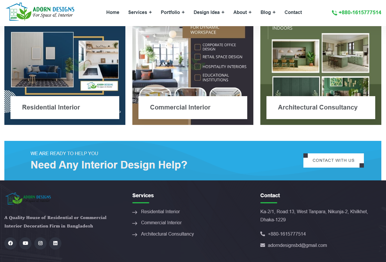 A creative and responsive website developed for Adorn Designs, an interior design company that blends aesthetics with functionality to deliver inspiring spaces.